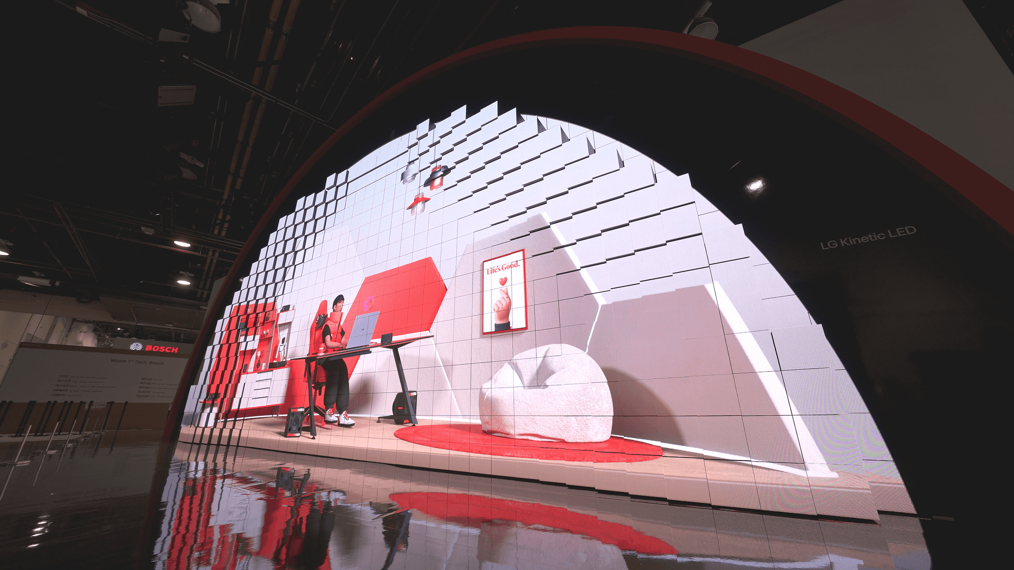 Easywith produced kinetic content for CES 2025 to visually realize LG’s AI vision under the theme “Life’s Good 24/7 with Affectionate Intelligence.” The 10.4m-wide, 5.2m-high hemispherical kinetic LED sculpture featured over 700 LED signages and precise motion engineering to create lifelike movements. Integrated with this structure, an omnibus-style 3D animation followed the daily lives of diverse lifestyle personas, organically synchronizing the motion of the sculpture with the narrative. AI services across everyday spaces—bedroom, vehicle, office, kitchen, and living room—were delivered through emotional storytelling, expanding the kinetic art into a part of the narrative itself. Through a seamless fusion of technology and emotion, the installation offered an immersive experience of the AI-driven lifestyle of the future.