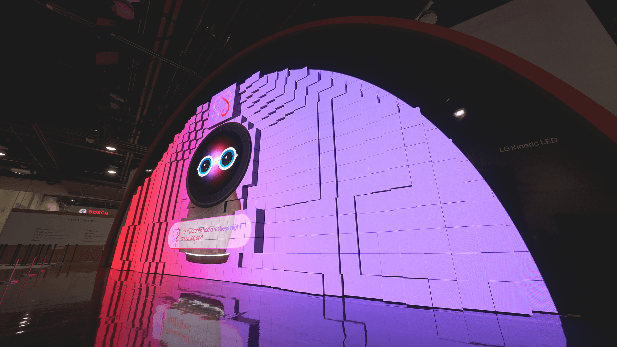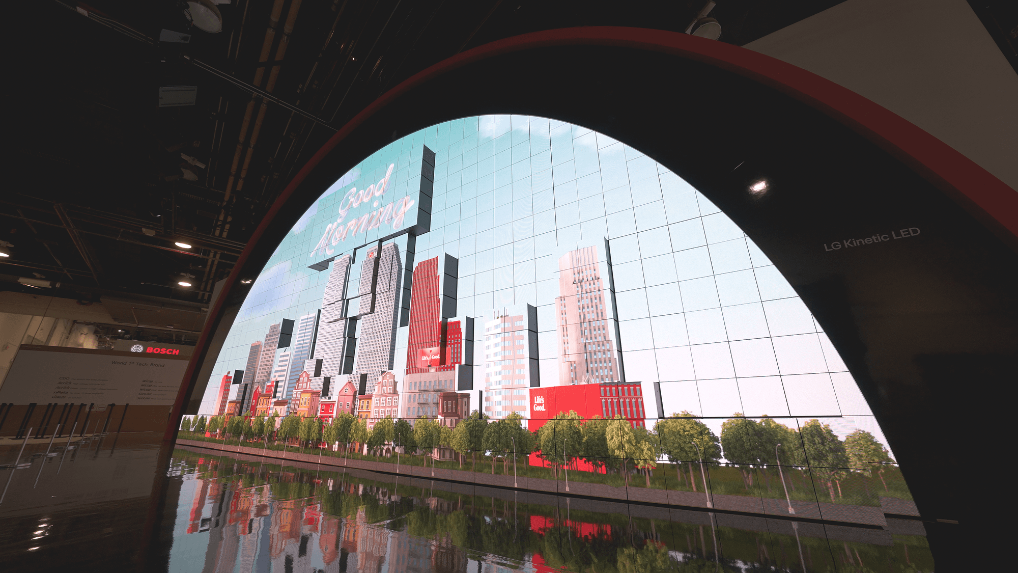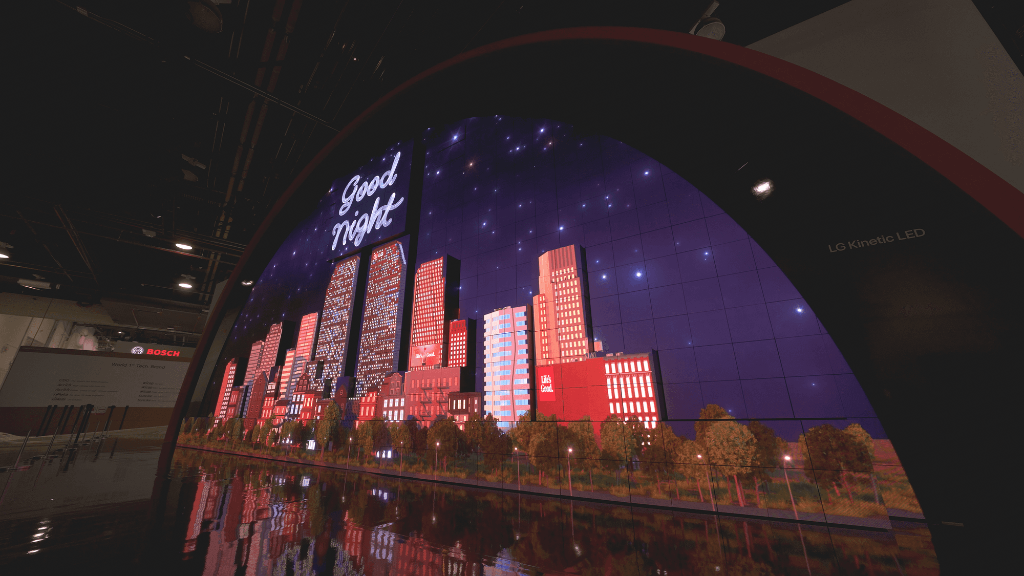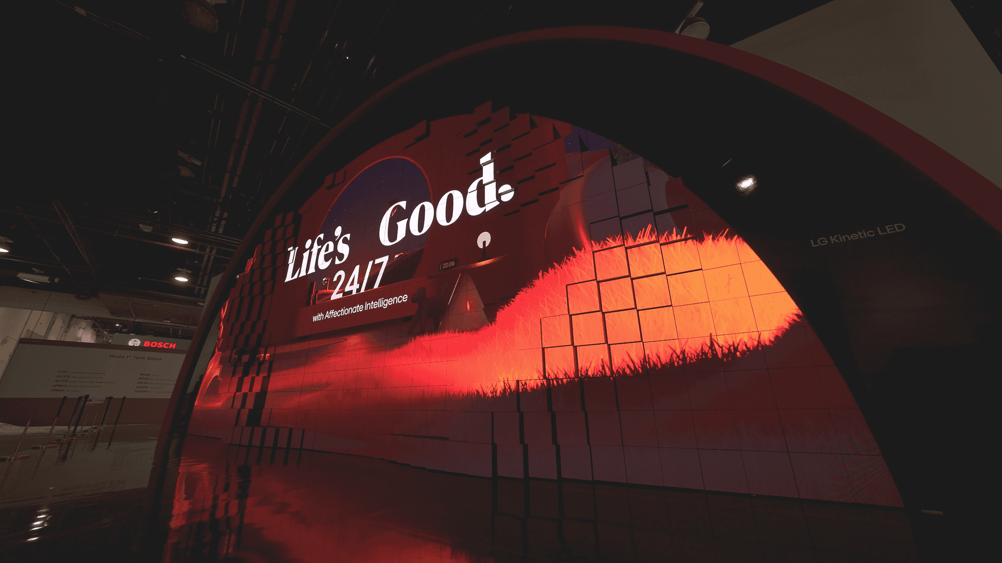 이지위드는 CES 2025에서 LG의 AI 비전을 구현하기 위해 ‘공감지능과 함께하는 일상의 라이프스 굿’을 주제로 한 키네틱 콘텐츠를 제작하였습니다. 가로 10.4m, 세로 5.2m 규모의 반구형 키네틱 LED 조형물은 700여 개의 LED 사이니지와 정밀한 모션 설계를 통해 생명감 있는 움직임을 구현하였습니다. 이에 연동된 옴니버스 형식의 3D 애니메이션은 다양한 라이프스타일을 대표하는 캐릭터들의 일상을 통해 콘텐츠와 조형물의 흐름을 유기적으로 연결하였습니다. 침실, 차량, 오피스, 주방, 거실 등 일상 공간에서의 AI 서비스를 감성적인 스토리텔링으로 풀어내며, 키네틱 아트를 내러티브의 일부로 확장하였습니다. 기술과 감성이 융합된 연출을 통해 관람객에게 몰입감 있는 미래 라이프스타일을 전달하였습니다.