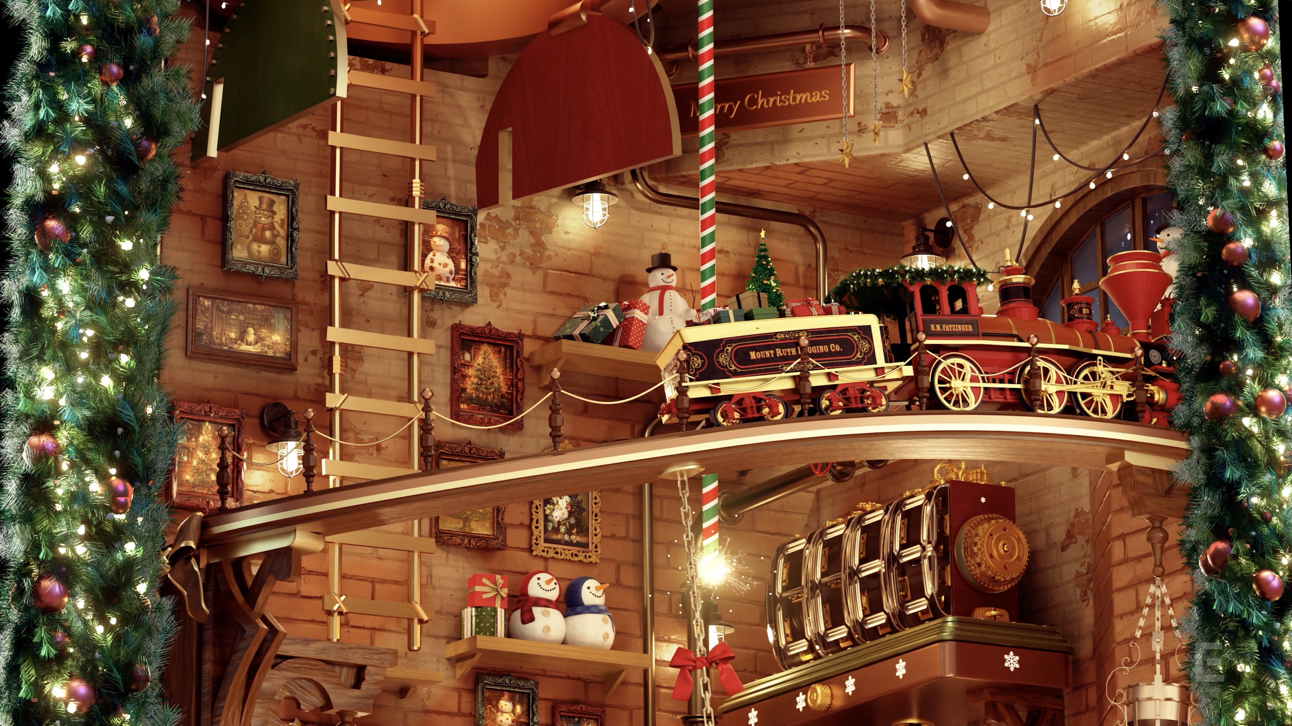 The story begins inside a warm chimney lit by the glow of a fireplace, where Santa awakens as the gifts waiting to be delivered begin to magically fly into his sack one by one. As the scene rises along the chimney, the dynamic vertical motion creates a sense of excitement and wonder, delivering a festive Christmas experience in the heart of the city.