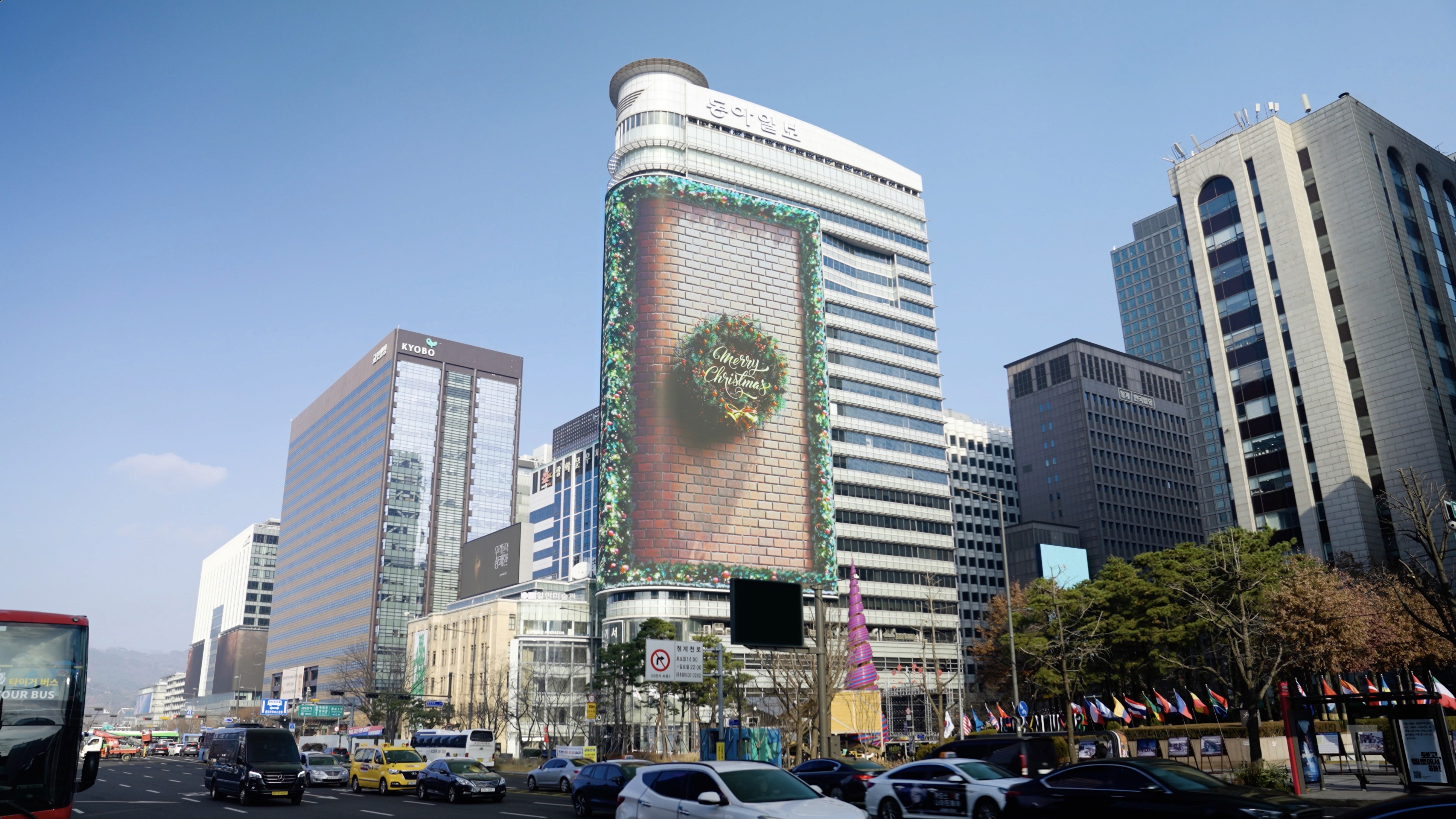 Easywith produced the Christmas seasonal content “SANTA’s MAGIC LIFT-OFF” for LUUX, the outdoor media signage installed on the Dong-A Ilbo building in Gwanghwamun.