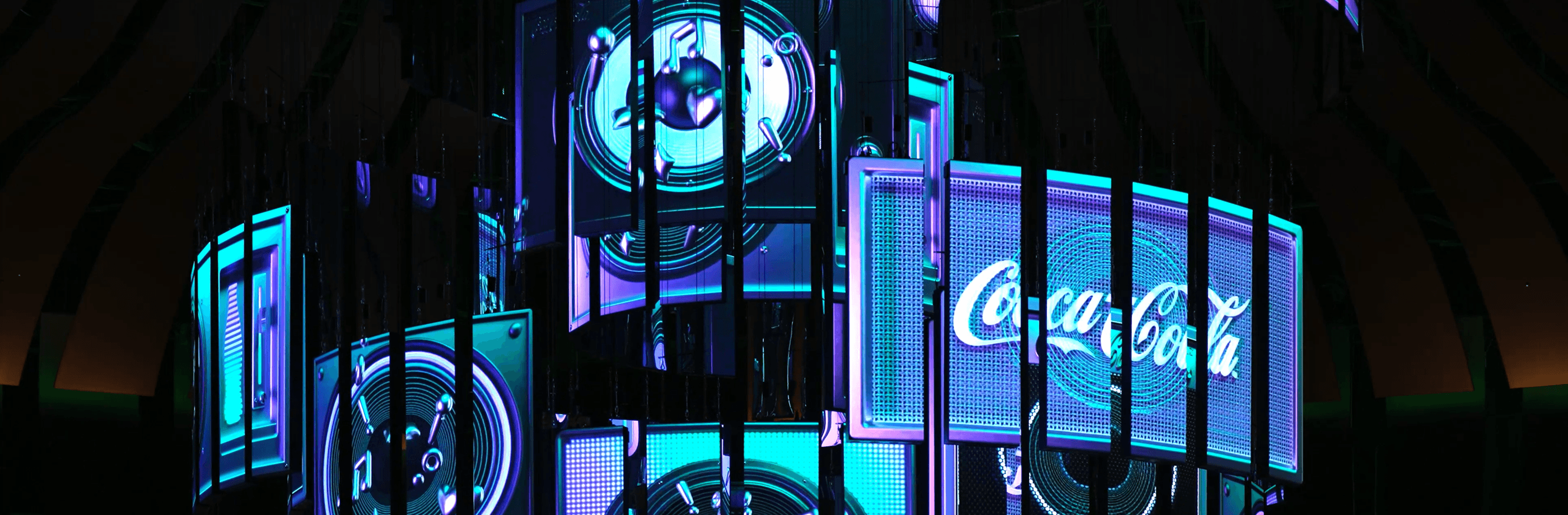 코카-콜라 코리아와 함께 인스파이어 리조트의 디지털 샹들리에를 활용한 키네틱 쇼 K-"Wave"를 제작했습니다. 본 콘텐츠는 K-Pop과 코카-콜라의 만남으로 탄생한 '코카-콜라 제로 한류' 제품의 모티브를 담아내기 위해 매체와 영상의 물결치는 듯한 움직임을 쇼의 주요한 요소로 연출했습니다. ‘쏟아지는 K-Pop Music’, ‘역동적인 한류 물결’, ‘코카-콜라 제로 한류(K-Wave)’의 흐름으로 이어지는 키네틱 쇼는 콘서트장을 찾은 전 세계 K-Pop 팬들의 시선을 사로잡고 콘서트 현장의 분위기를 고조시켰습니다.