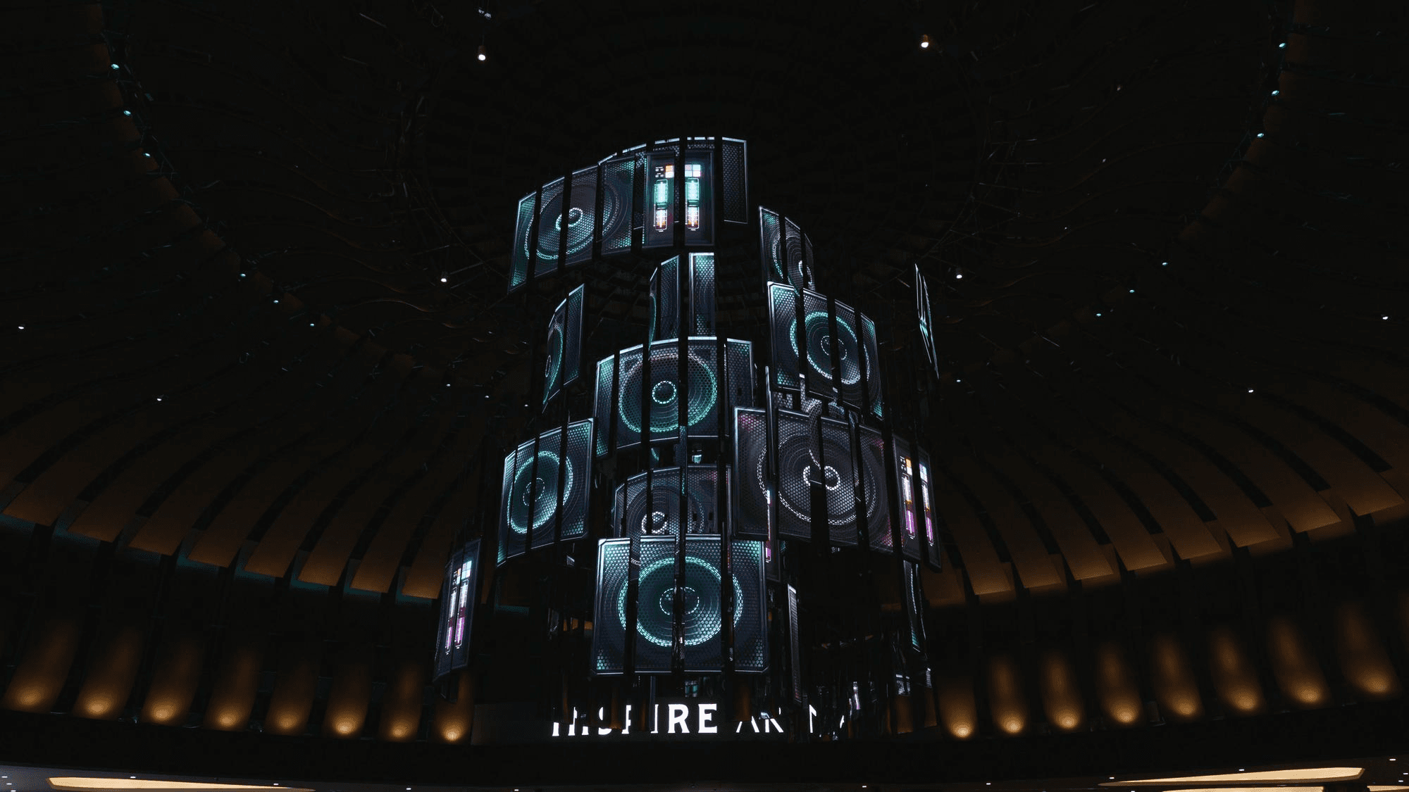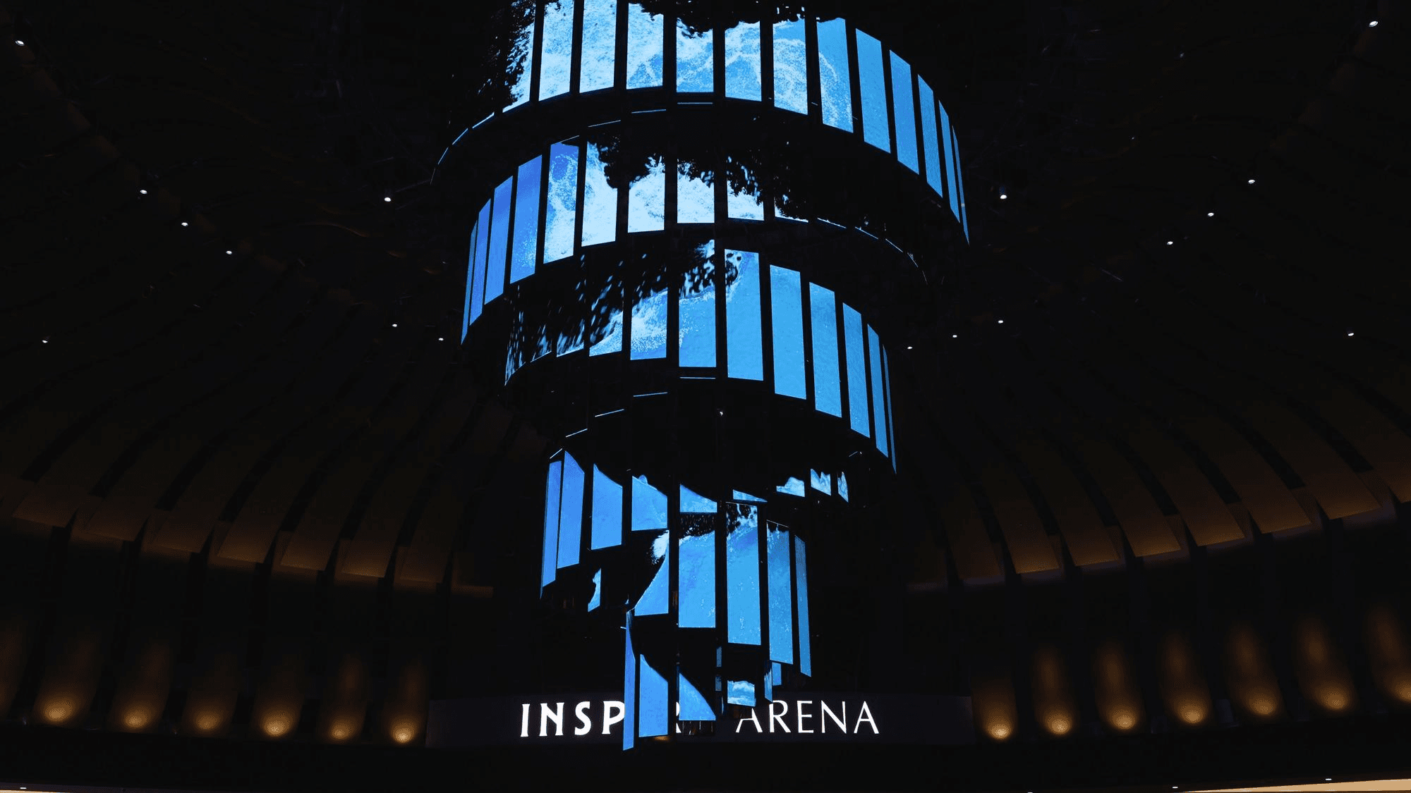 디지털 샹들리에는 인스파이어 엔터테인먼트 호텔 리조트에 설치한 키네틱 미디어입니다. 호텔이라는 맥락을 따라 샹들리에를 모티브로 디자인한 본 매체는 156개의 LED 스크린이 2개의 축을 따라 위 아래로 움직이며 다양한 조형성을 구현합니다. 전시 콘텐츠의 주제는 “Unimagined Scene : 상상 되지 않은 장면을 보다”로, 아레나와 카지노 등 리조트의 엔터테인먼트 요소들을 소재로 한 키네틱 쇼를 선보입니다. 호텔의 이름이 의미하는 바와 같이, 이제껏 상상해보지 못한 광경을 연출함으로써 고객에게 인스퍼레이션을 주는 것을 목표했습니다.