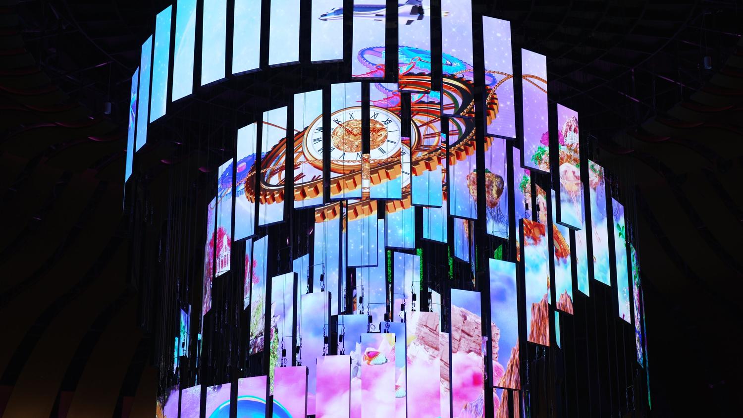 Digital Chandelier is a kinetic installation at Inspire Entertainment Resort in Incheon, Korea. This huge kinetic media is designed with the motif of a “chandelier,” considering the spatial context. 156 LED screens form 6 circular layers, each moving up and down along two wire axes. The theme of the content is “Unimagined Scene”. And the content consists of the elements that make up the Inspire Hotel Resort. By creating a sensuously fresh scene in this unique media, we aimed to get guests “inspiration,” as the hotel’s name suggests.