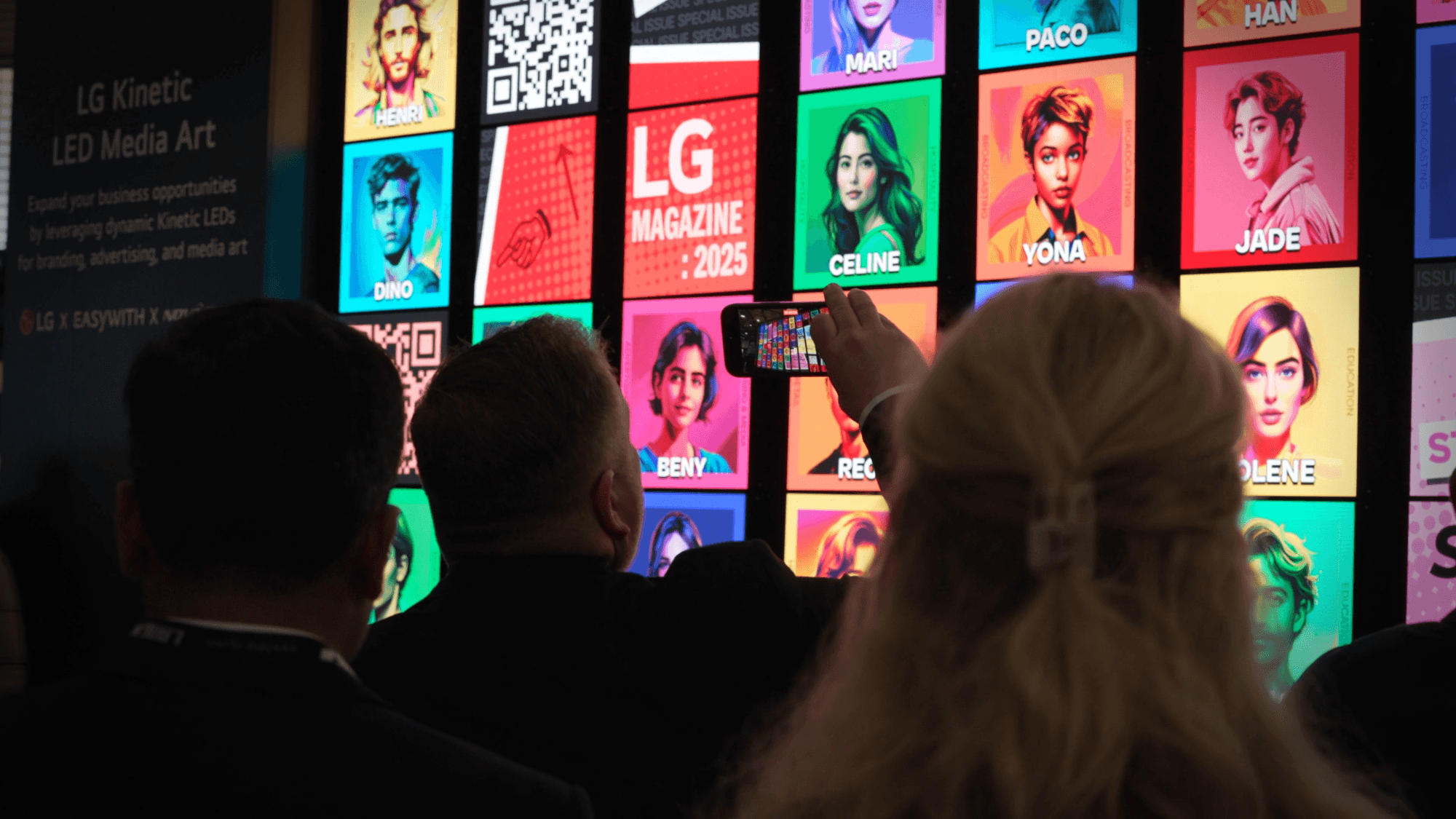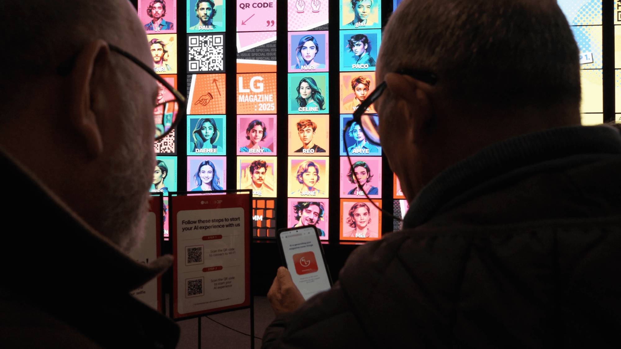 At ISE 2025, Easywith unveiled its kinetic media art project, Art of Synergy, in collaboration with LG. This massive kinetic installation, measuring 7.18m × 4.09m, was composed of 88 connected LED signage panels. Featuring a 360-degree rotating structure integrated with real-time responsive graphics, the piece created an immersive experience that seamlessly blended technology and art. The project showcased not only kinetic-based media art but also interactive content powered by generative AI technologies. The media art visualized the brand’s forward-looking values through dynamic visual patterns that responded to movement. The interactive content engaged visitors by transforming their photos using AI and displaying them on the screen, encouraging direct brand participation. This exhibition was recognized as a standout example of sensory-rich content optimized for large-scale spaces and a creative expression powered by cutting-edge technology.