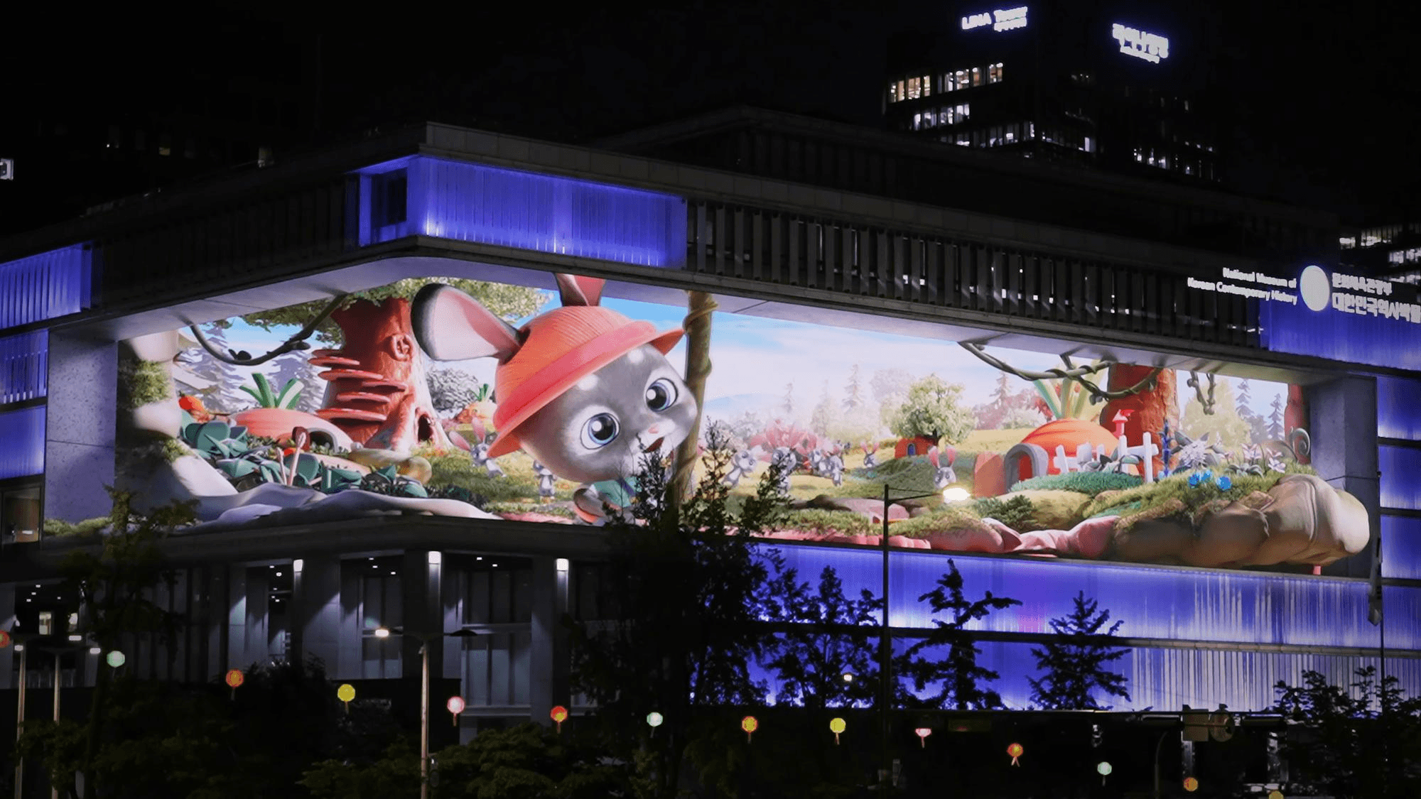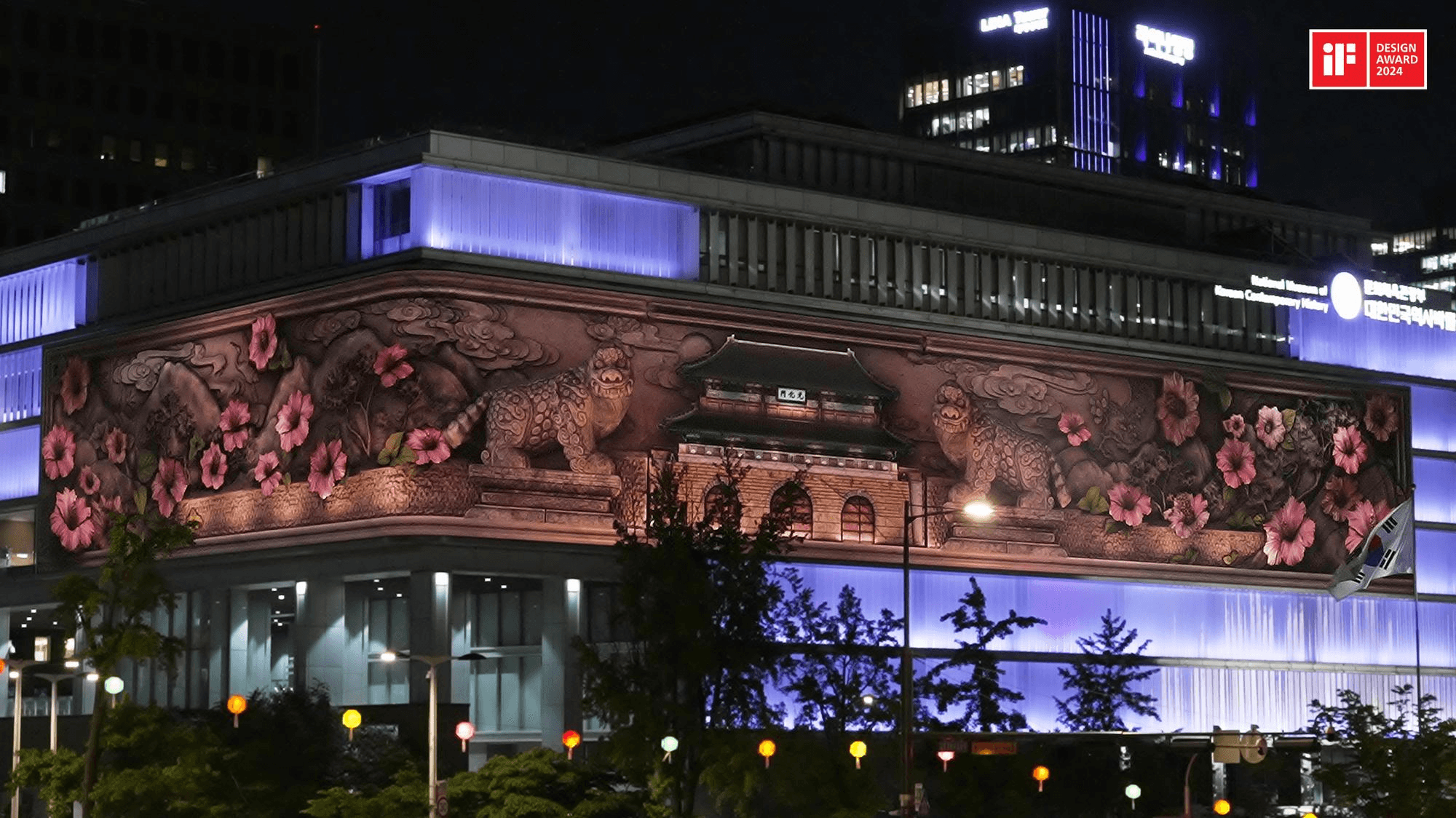 Easywith effectuated digital signage contents which were projected onto the exterior walls of the National Museum of Korean Contemporary History in Gwanghwamun Plaza. It was an opportunity to showcase the symbolism of Gwanghwamun Plaza & Korea’s traditional beauty through Seoul Light Gwanghwa content, using digital kinetic wall videos and rooftop lighting to express the core message of the anniversarial event, as well as present The Black Rabbit’s Adventure, where a black rabbit (signifying the year of the black rabbit) journeys through time and space chasing after streams of light.
