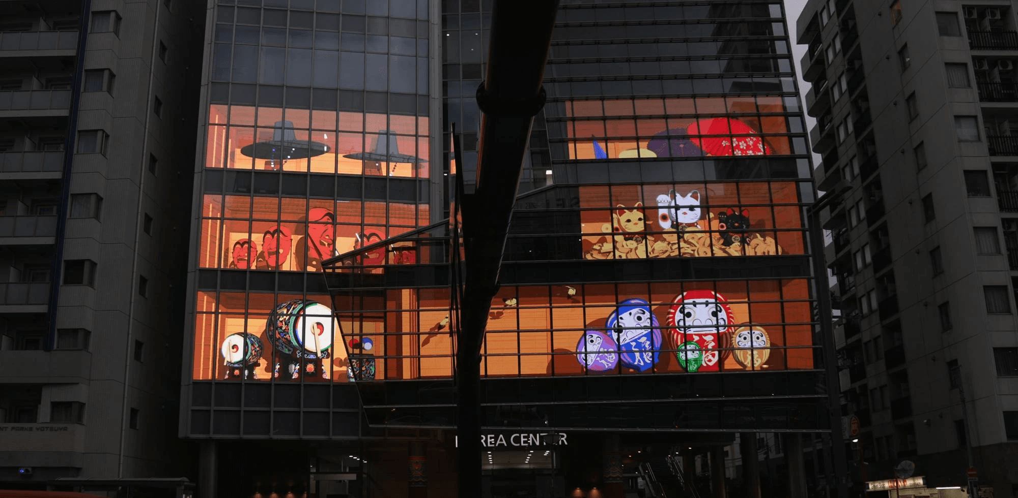 주일 한국 문화원에서 '새로운 한국을 만나다'라는 주제로 한국의 매력적인 모습과 양국 간 문화교류를 표현한 미디어 아트를 선보였습니다. 두 지역 중심부에 위치한 건물 외벽 초대형 LED 전광판에서 한국의 문화 관광자원을 소개하고 양국의 주요 명소, 전통 소품 등을 활용해 양국 간 활발한 교류를 강조하는 영상을 제작하였습니다.