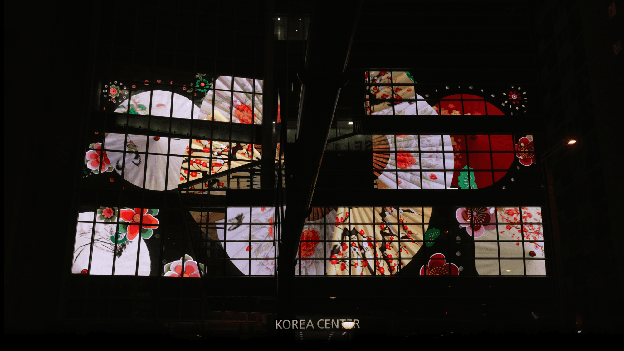 주일 한국 문화원에서 '새로운 한국을 만나다'라는 주제로 한국의 매력적인 모습과 양국 간 문화교류를 표현한 미디어 아트를 선보였습니다. 두 지역 중심부에 위치한 건물 외벽 초대형 LED 전광판에서 한국의 문화 관광자원을 소개하고 양국의 주요 명소, 전통 소품 등을 활용해 양국 간 활발한 교류를 강조하는 영상을 제작하였습니다.