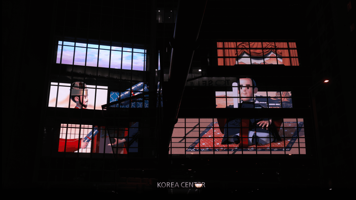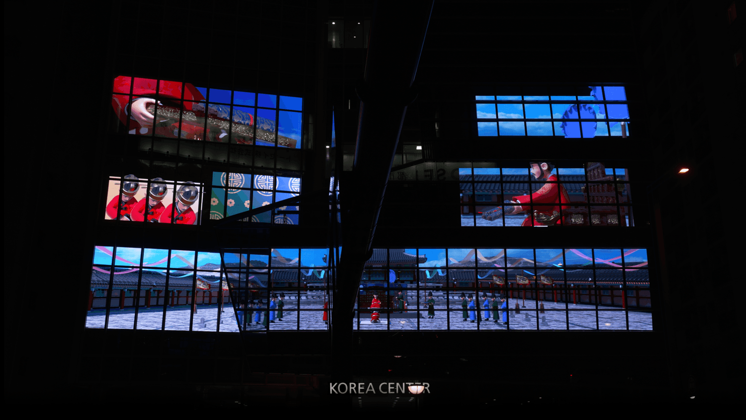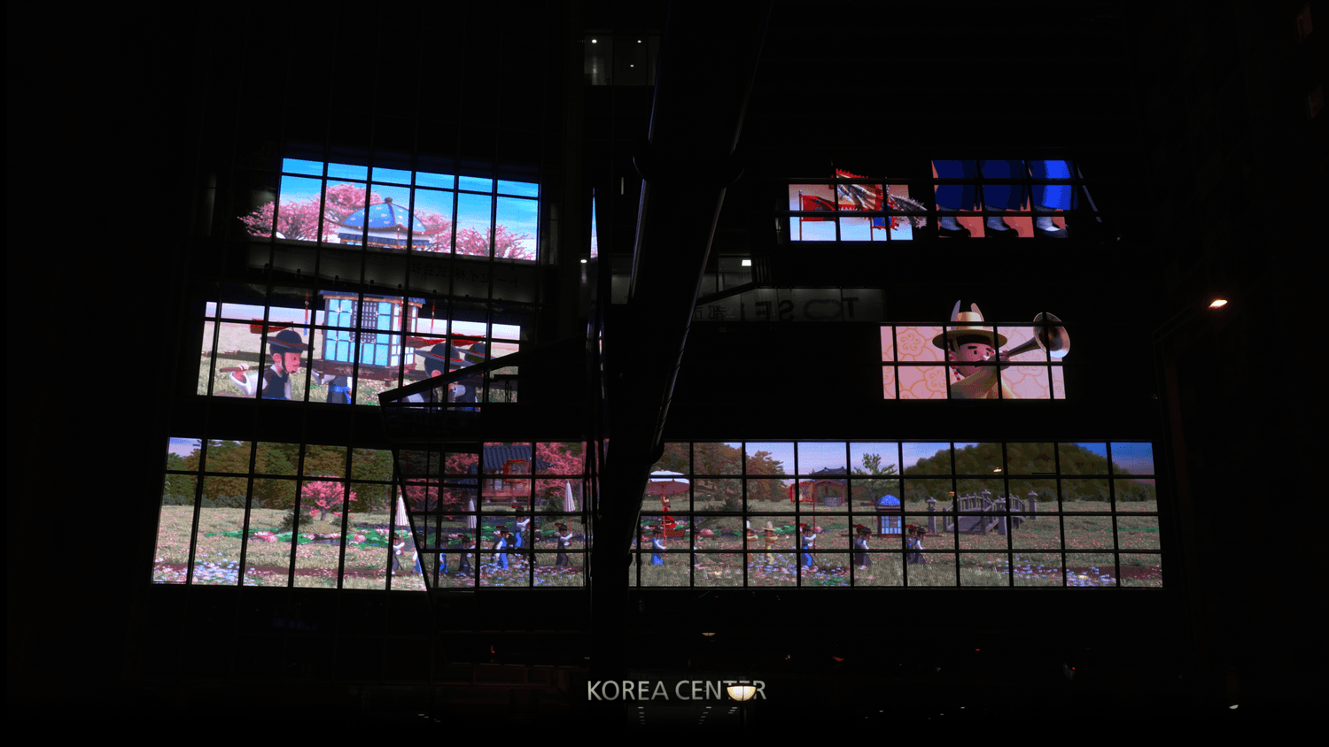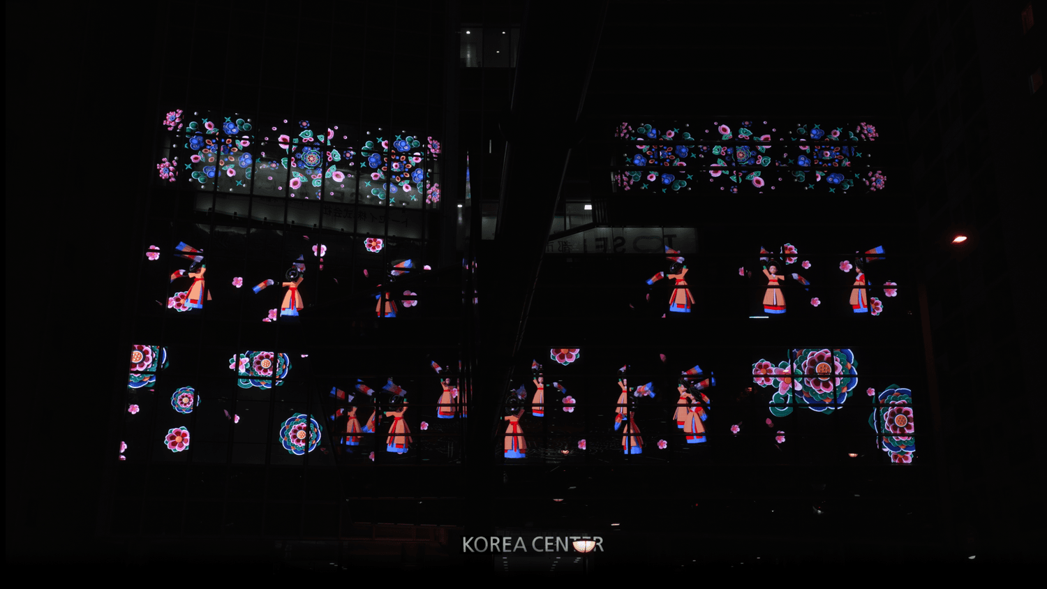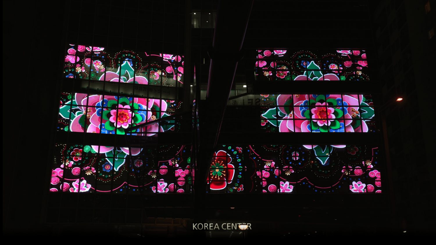At the Korean Cultural Center in Japan, a media art exhibit under the theme “Meet the New Korea” was showcased, which expressed the charm of Korea and cultural exchange between countries. A large digital LED billboard on the exterior walls of both centers displayed Korea’s cultural assets as well as both countries’ main landmarks and traditional objects, representing the active interexchange of multiple cultures.